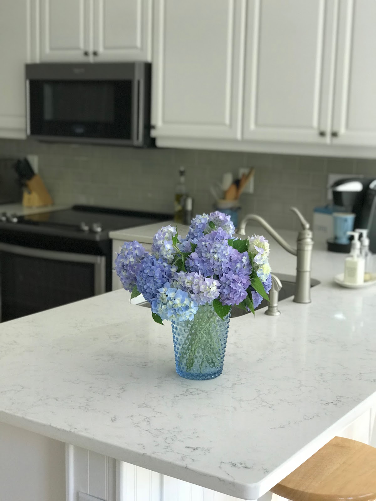 Your new kitchen is beautiful. We will be redoing ours in 5 years or so (when my husband retires) and I am looking forward to it! I have black tile, large, on the counter top and want something exactly like your quartz.